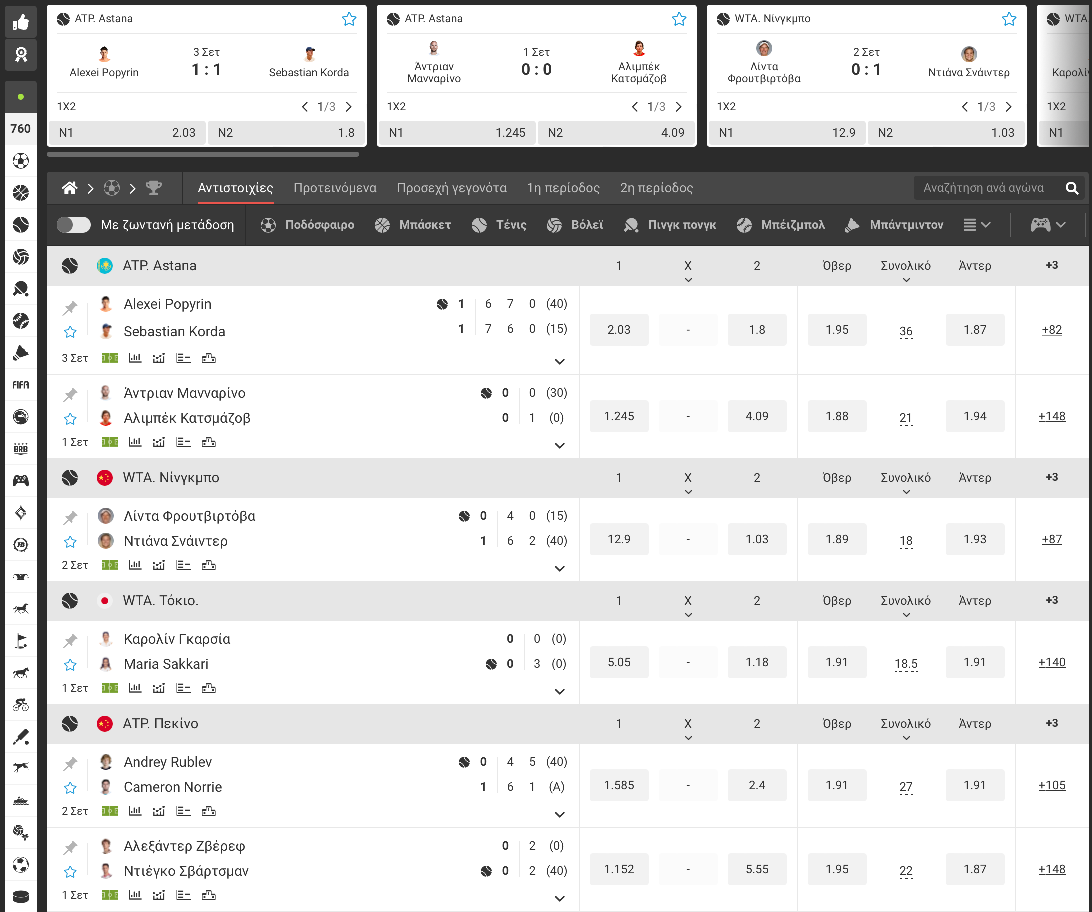 - choose the event of passion from among one of the most interesting ones in the centre block of the main page or in its left section, specifying the sporting activity, nation, event and match;