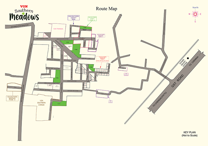 A perfectly planned plotted community just opposite SRM University in Kattankulathur. Equipped with all the essentials for everyday living surrounded by sheer convenience. VGN Southern Meadows is close to Schools, Colleges, Hospitals, Shopping centers, IT hubs and well connected to GST Road, Airport, Outer Ring Road and Maduravoyal – Tambaram Bypass Road.
